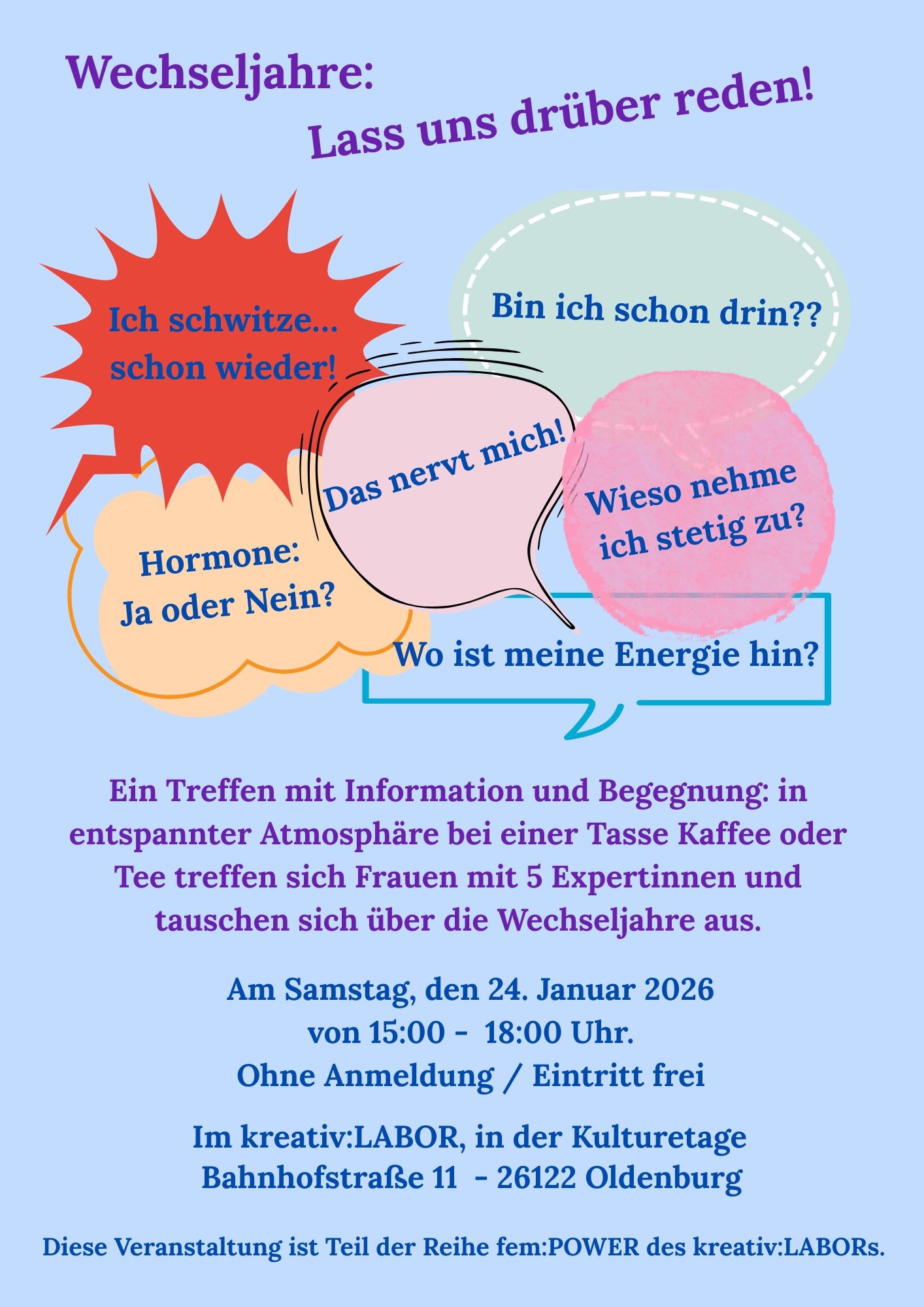 Wechseljahre: Lass uns drüber reden! Ein Treffen mit Information und Begegnung: in entspannter Atmosphäre bei einer Tasse [mehr lesen]